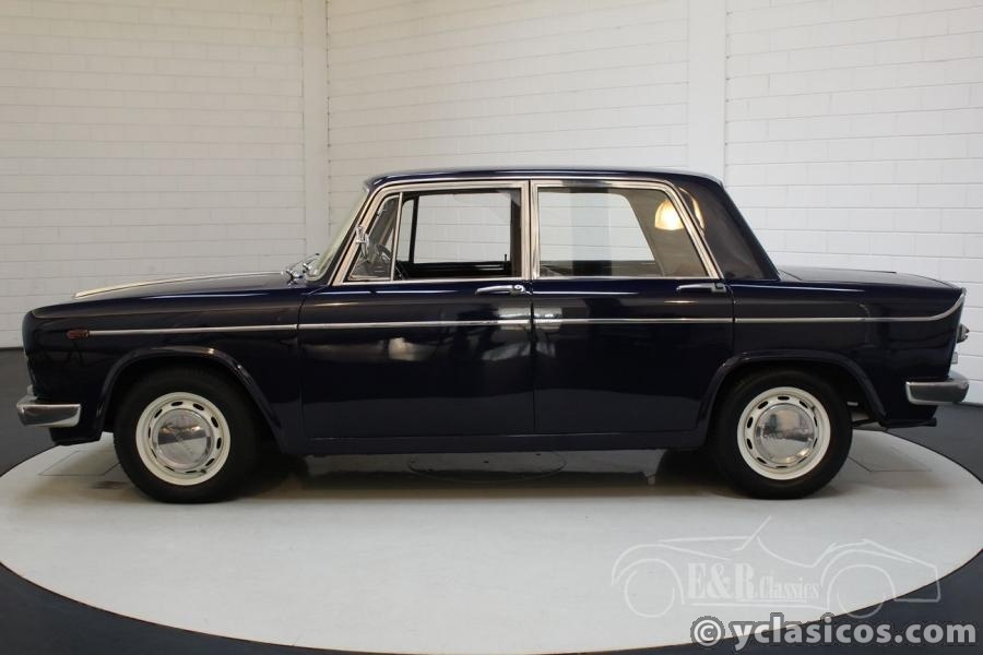 The Lancia that we hereby offer for sale is a beautiful Fulvia Berlina 2C that was built in 1965. The car was delivered to its first owner in Italy. This classic Italian saloon has a dark blue paint with white wheels and a brown interior, a fantastic colour combination. Under the hood is the smooth and powerful 1.091cc V4 engine with double Solex carburetors, standard for the Fulvia 2C. A very good driving and comfortable car with space for four people! Are you looking for a special and in good condition Italian classic? Contact us for more information about this Lancia Fulvia Berlina 2C.