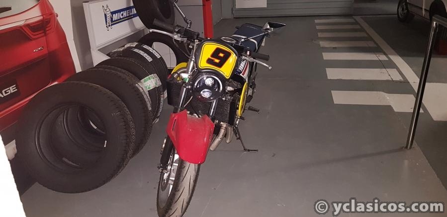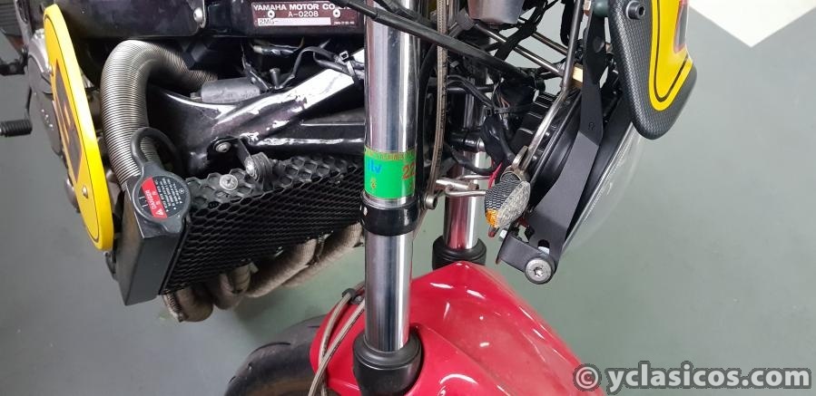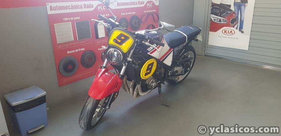 Luces Led (todas), llanta trasera Braid 7x18 (echa a medida), suspensión trasera y dirección Honda VFR 750, discos de freno Brembo, depósito combustible nuevo, carburación de FZR 1000 EXUP, colectores Marshall (USA), pintada colores YAMAHA AMERICA, piloto Eddie Lawson, un capricho totalmente legalizado y homologado, ITV y documentación al día.<