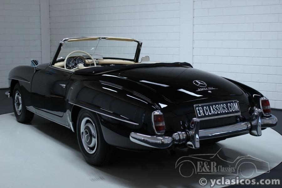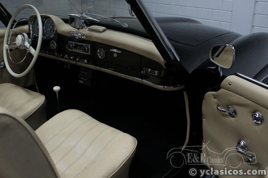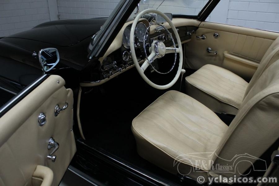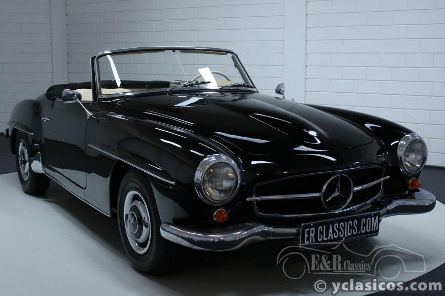 This Mercedes-Benz 190SL Cabriolet was delivered new in 1962. This Mercedes was restored a few years ago, with a nice result. This classic car has been owned by 1 owner for 24 years, a real enthusiast. The black paintwork of the car is beautiful and matches well with the beautiful leather beige interior. The color code is: DB40 Black. This classic is equipped with a correct type 1900cc 4-cylinder engine and the car has an optional 3rd seat. Are you looking for a beautifully restored Mercedes-Benz 190SL? Get in touch with us.
