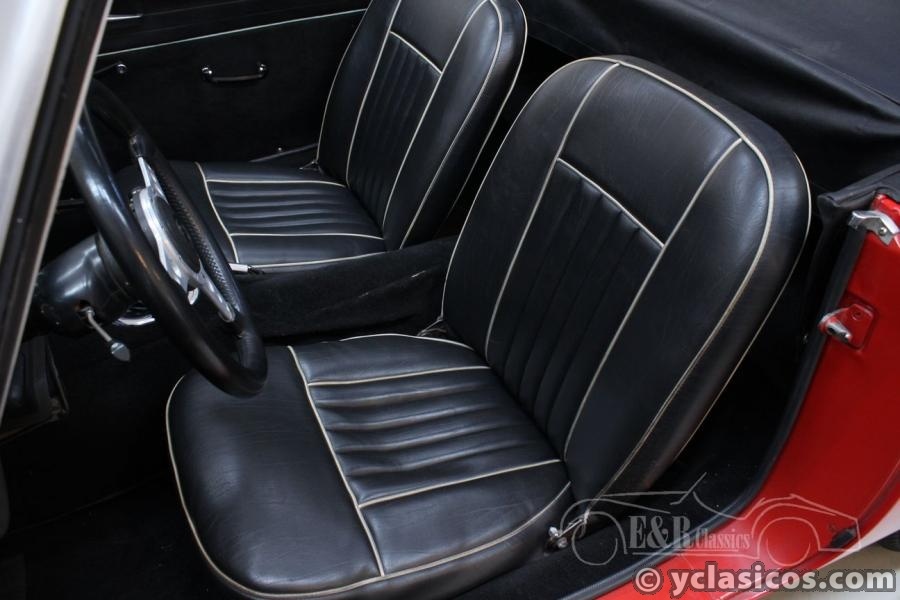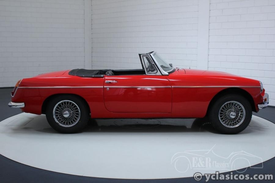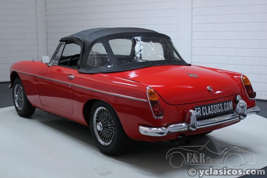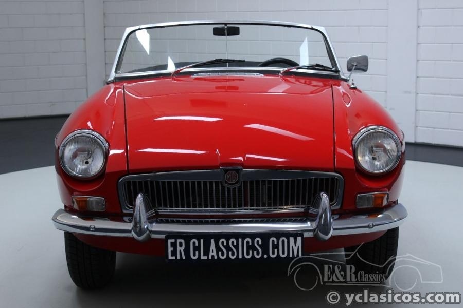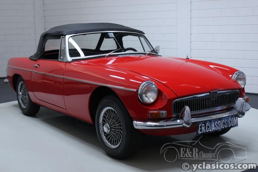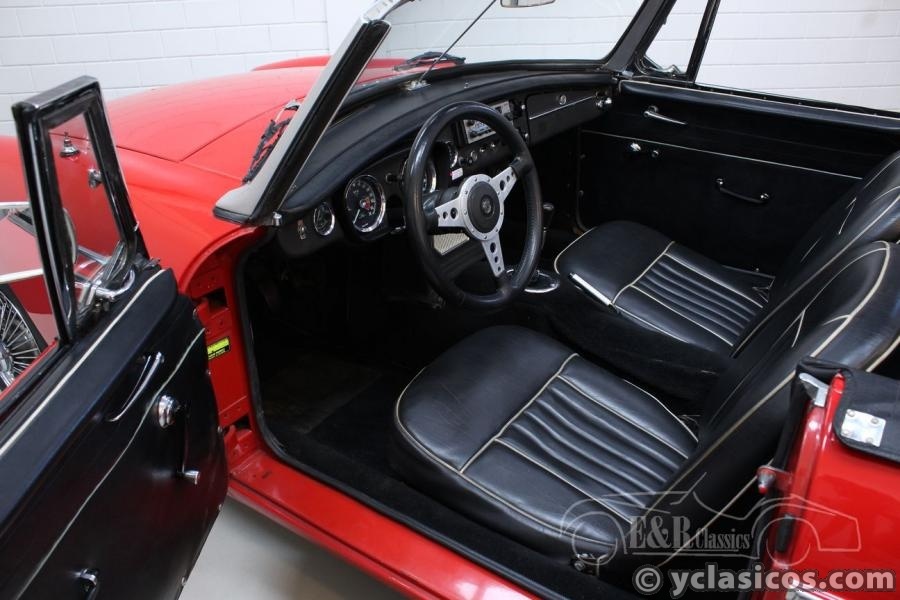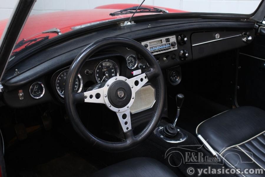 This MG MGB was delivered new in 1964. It is equipped with the 1800cc 4-cylinder engine and the manual gearbox. This car has beautiful chrome details, such as wire wheels. The car also has a neat soft-top. This MG B has beautiful red paint and a beautiful black interior. Are you looking for an MG MGB in nice condition? Get in touch with us.