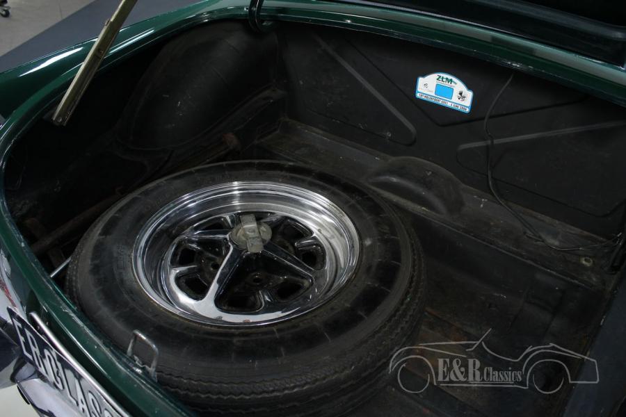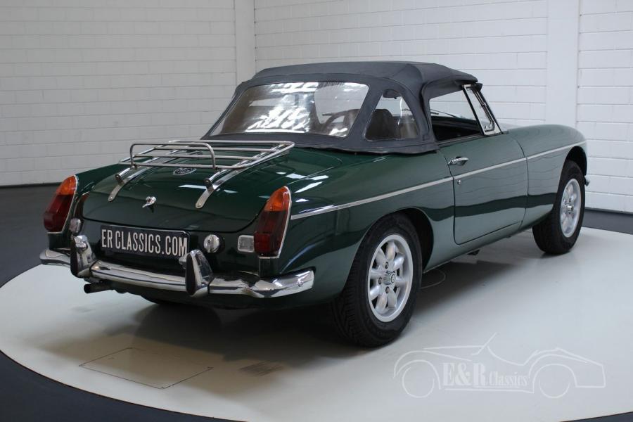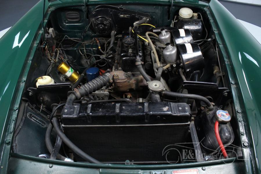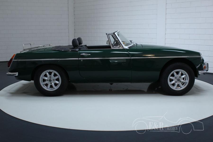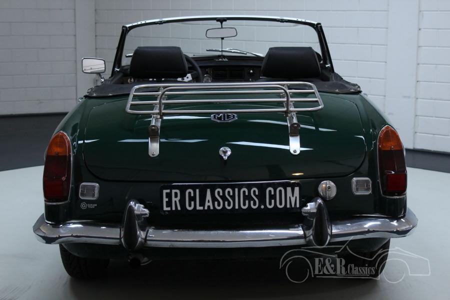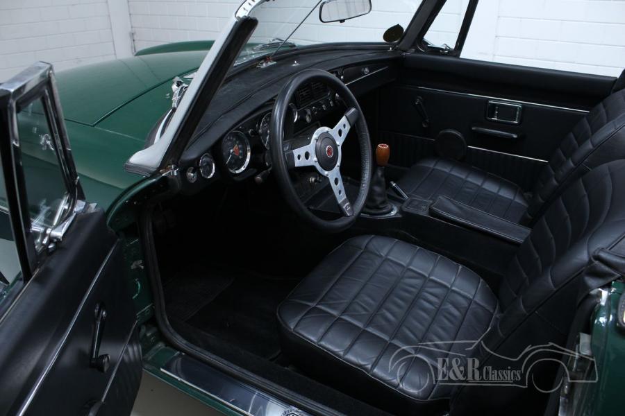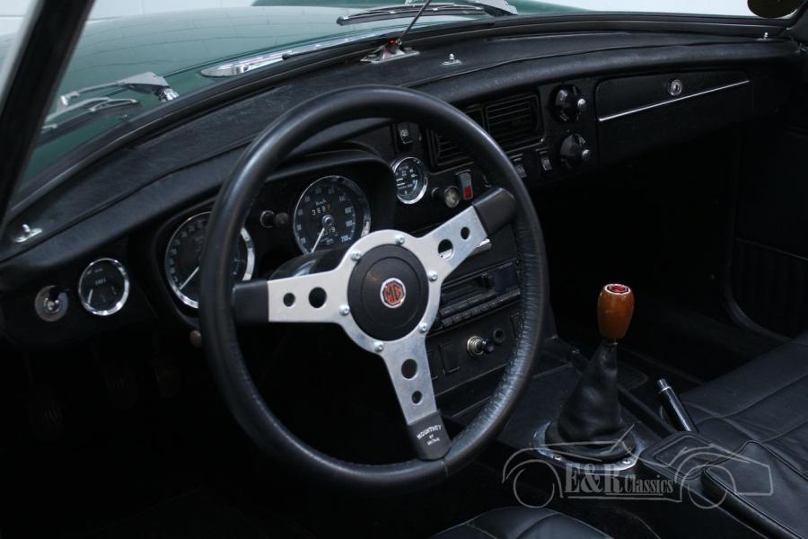 This MG MG B was delivered new in 1974 in Europe. This real English classic is equipped with the 1800cc 4-cylinder engine and the manual gearbox. This Cabriolet features the very beautiful British Racing Green paintwork and the fantastic leather interior. This beautiful MGB is equipped with more luxurious seats for more driving comfort and because it is one of the few European versions, the car has the steel dashboard. The car also has overdrive. Are you looking for a very nice MG MGB? Please contact us for more information.