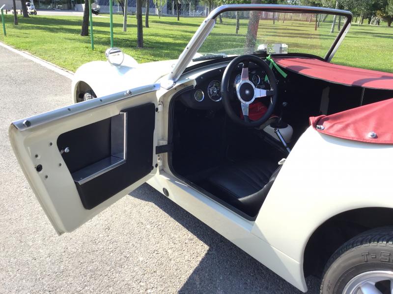 El Austin Healey SPRITE MKI es del año 1960, el motor deriva totalmente del Austin A series, restaurado de 948 CC con 49 CV, doble carburador y 8500 millas, por lo que el mantenimento es muy económico y las piezas de recambio se encuentran fácilmente.