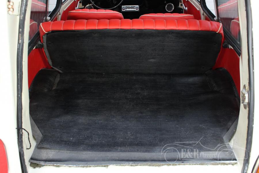 From 1960 to 1975, Fiat produced the successful 500, a compact city car. The station wagon model became known under the name "Giardiniera". From 1965, production of the Giardiniera was moved to the Autobianchi factory in the northern Italian town of Desio. The car retained its signature suicide doors and was produced at Autobianchi until 1977. The beautiful Fiat Autobianchi Giardiniera that we hereby offer for sale was built in 1969. The car has beautiful white paint and is equipped with a folding roof. The interior has beautiful red upholstery with white piping. The Giardiniera is equipped with the 2-cylinder 499cc engine that runs nice. In short, a well-maintained car and in good condition. The Giardiniera is also very suitable as a promotional or advertising car for a company. You are very welcome to come and see this Fiat 500 Autobianchi Giardiniera in our showroom!
