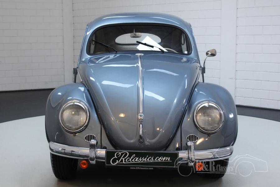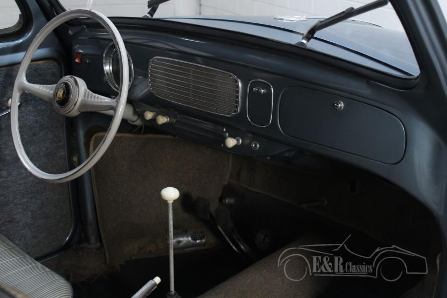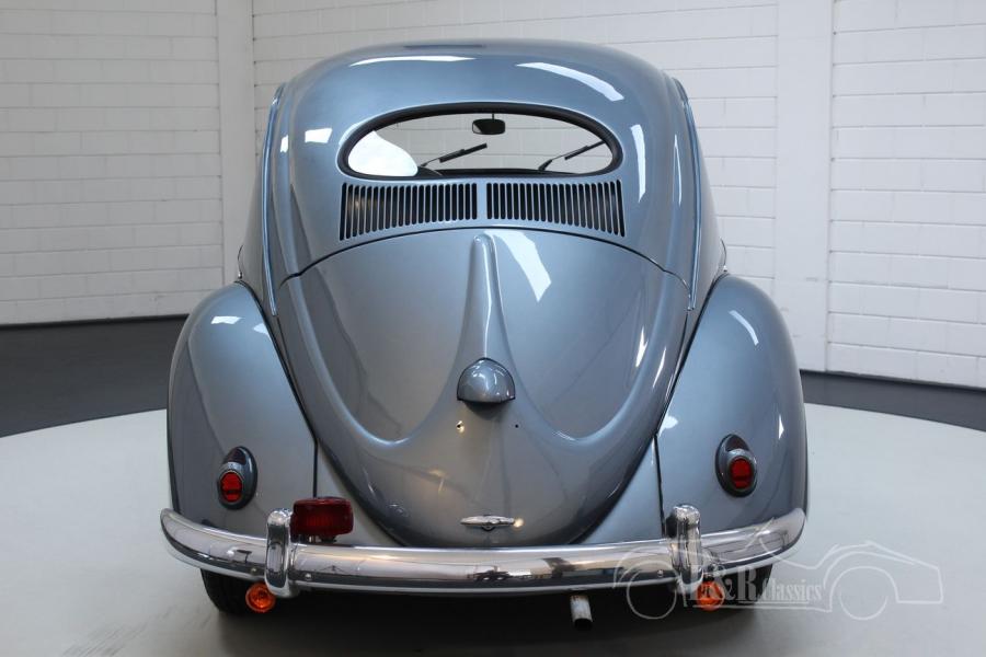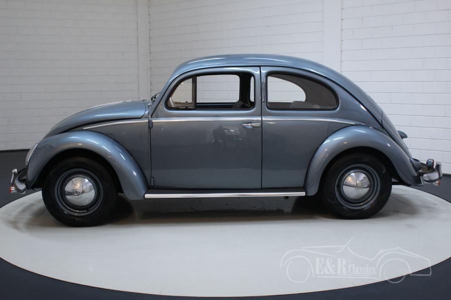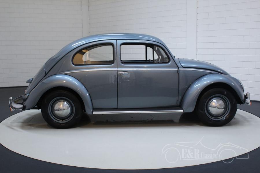 This is a beautiful rare VW Beetle Oval from 1955 from a large collection of a Belgian Air-cooled enthusiast. This Oval Beetle was restored with love for originality in 2017. Bodywork and paintwork were renewed in 2017 as well as many technical details, including a complete engine overhaul. With an eye for originality, the last owner has decided to leave the 65-year-old interior completely original during the restoration, because it is in a very neat condition. Do you want to buy a real oval beetle? Then come and see our showroom or request an online shopping video from us.