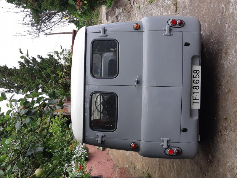 Matrícula TF- 18658. Completamente restaurado y en perfecto estado, con piezas originales traÍdas de Inglaterra, Vauxhall Motors, Luton,( el precio incluye también piezas de repuesto).Con certificado de vehículo Histórico, por lo que está excento del pago del rodaje. Muy original en su estilo: con puertas de corredera, palanca de cambio en el volante,y parte trasera de madera. Especial para coleccionistas, con el añadido práctico que se puede usar como vehículo de carga, pues sigue manteniendo la misma fuerza.