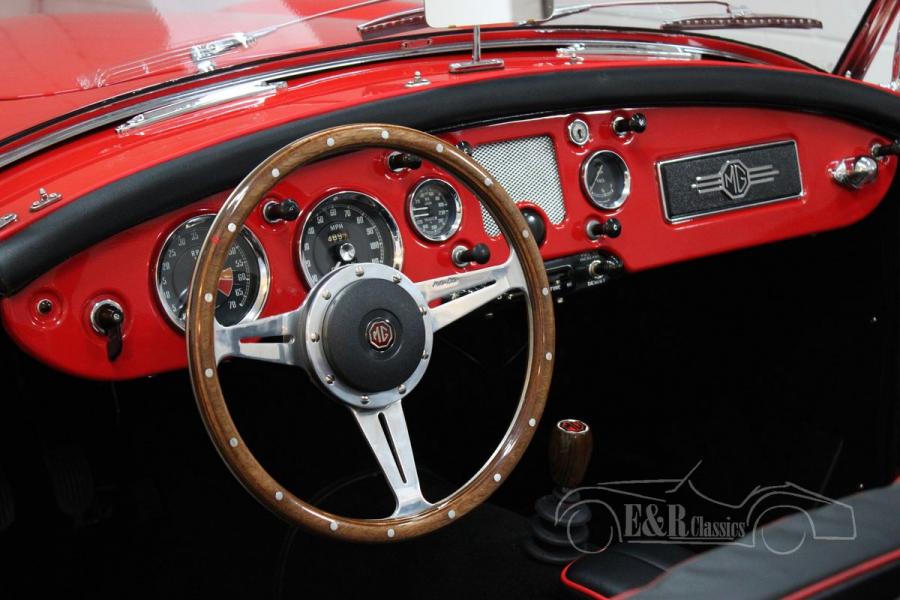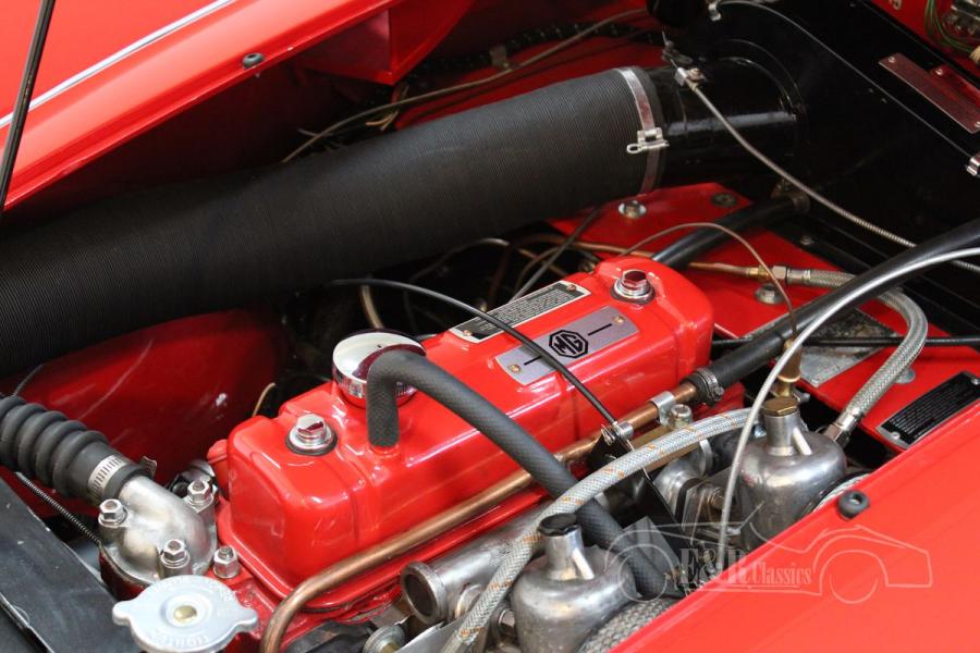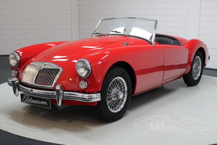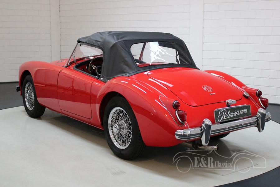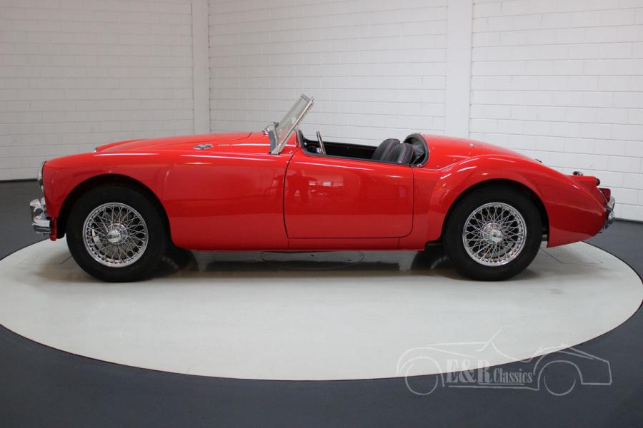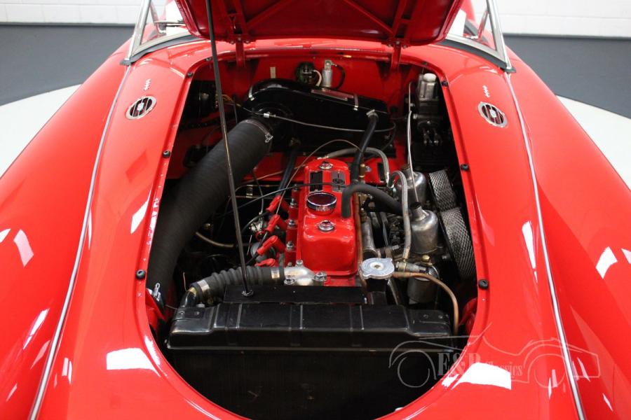 This great body-off restored MG MGA is in concours condition and has the 1,600cc cylinder engine with manual gearbox. A full photo report of the restoration is available. The interior is in top condition with the seats covered with beautiful black leather and finished with red piping. The body has a beautiful red paint in combination with a black soft top. The chrome wire wheels are a joy to look at. The immaculate luggage compartment is equipped with a spare wire wheel. This MG MGA is a really good investment and certainly has good investment potential. Are you looking for an excellent MG MGA? For more information or a personal shop video, please contact one of our sales people.