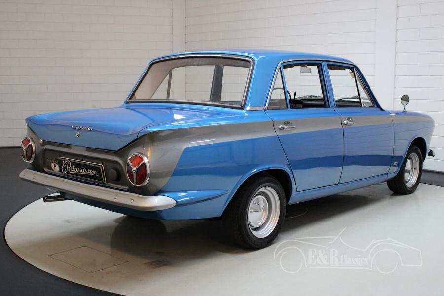 This extensively restored 1963 Ford Cortina has the 1,197cc 4-cylinder engine with manual gearbox. The body has a beautiful blue and silver-grey paint and is in good condition. The interior is in very good condition and has a red upholstery. Are you looking for a very nice English Ford Cortina from the 1960s? For more information or a personal shop video, please contact one of our sales people.