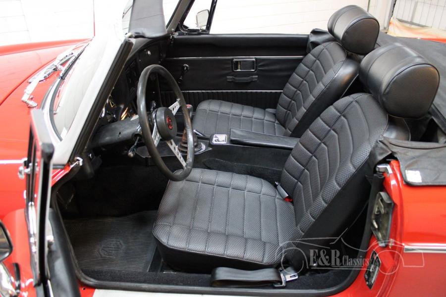This 1972 MG MGB Roadster is in very good condition and has the 1798 CC, 4 cylinder engine and manual gearbox with the popular overdrive. The body has a very nice red paint and a black soft top. The beautiful interior has black upholstery. The beautiful chrome is in good condition and looks very nice in combination with the red colour. Are you looking for a very good MG MGB with overdrive? For more information or a personal shop video, please contact one of our sales people.