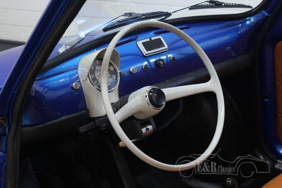 The classic Fiat 500 will always be a beautiful car. This Italian city car is still a very popular classic model. This specific car was built in 1968 and has a beautiful blue metallic paint, which combines beautifully with the brown interior. The good running 499cc 2-cylinder engine ensures that this Fiat 500 L drives great. A step back in time when you start touring with the folding roof open. In short, a very well maintained and in good condition Fiat 500 that is ready for an enthusiast. You are very welcome to come and see this car in our showroom.