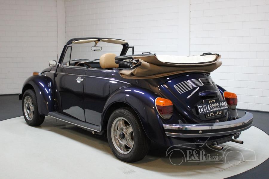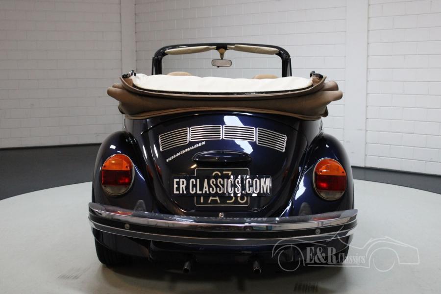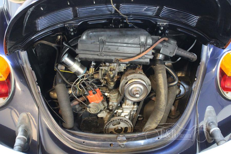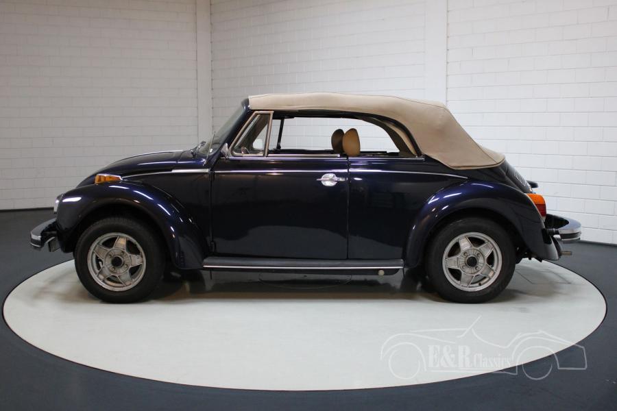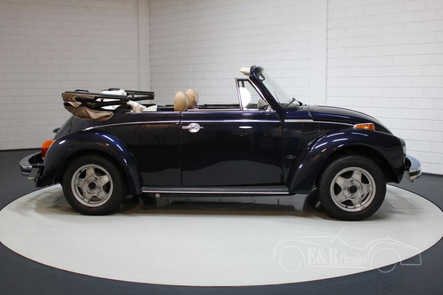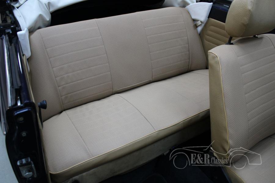 This Beetle comes from a collection of a true VW enthusiast who has always maintained the car well. The classic has been restored in the past and all invoices are present. The dark blue paint of this VW Beetle in combination with the cream-coloured upholstery and soft top, makes it the ultimate convertible.