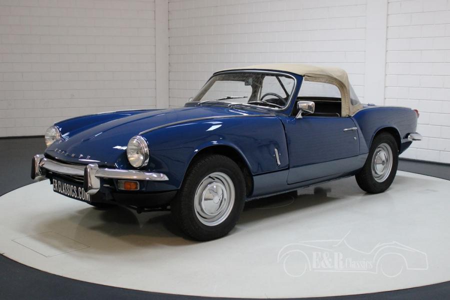 This classic comes from a collection of English vintage cars and has always been well maintained by its previous owner. The complete maintenance history is known and recorded in invoices. As you can see in the photos, this Triumph Spitfire MK3 Cabriolet has recently been given a new dark blue paint. This colour looks great on the Triumph and contrasts nicely with the new chrome accessories. In short: a wonderful convertible in good condition that is ready for many beautiful tours.
