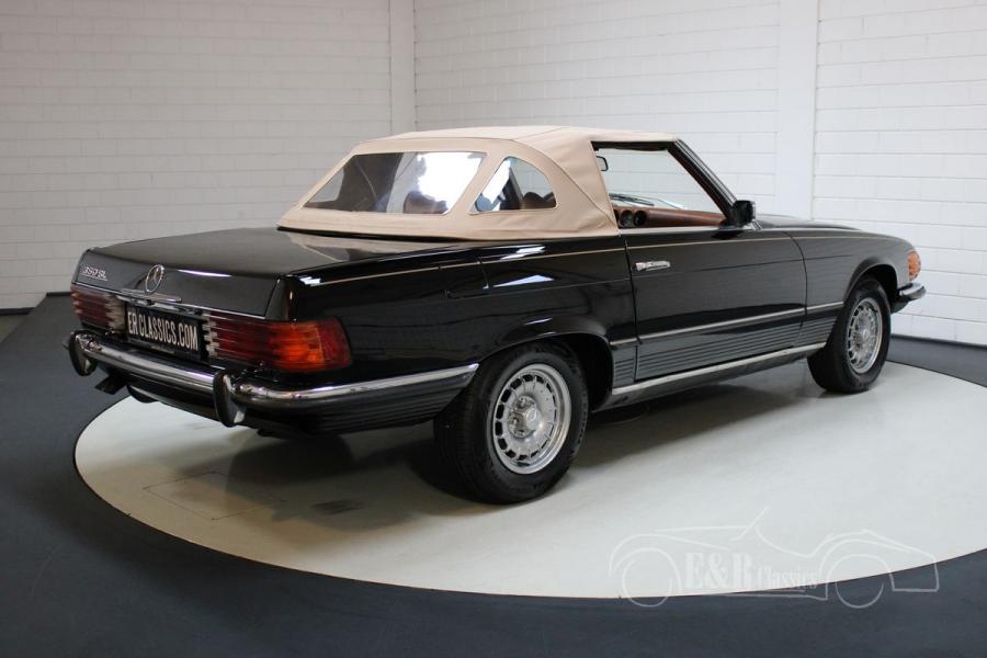 This Mercedes-Benz 350 SL is in good optical and technical condition and has always been maintained with great care. The black paint and chrome details of this convertible make it stylish. In addition to a black hard top, this Mercedes-Benz has recently been fitted with a brand new cream-coloured soft top. The soft top really looks great with the light leather upholstery. To top it all off, the 350 SL is fitted with original baroque wheels. Can you picture yourself touring around in the sun?