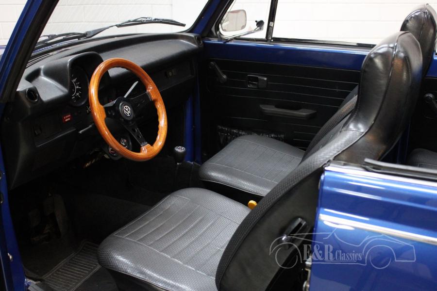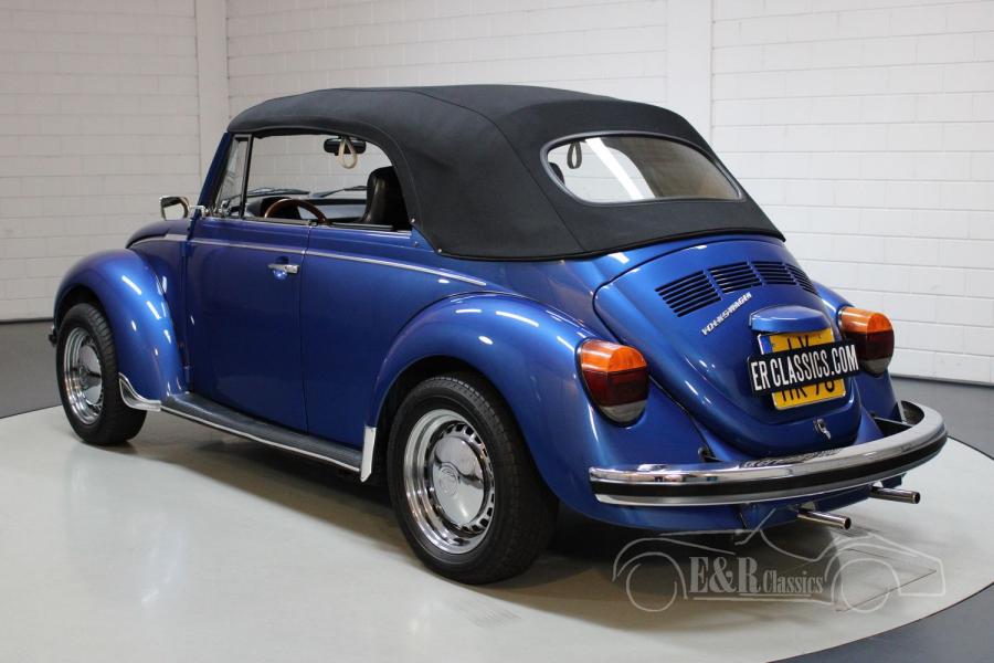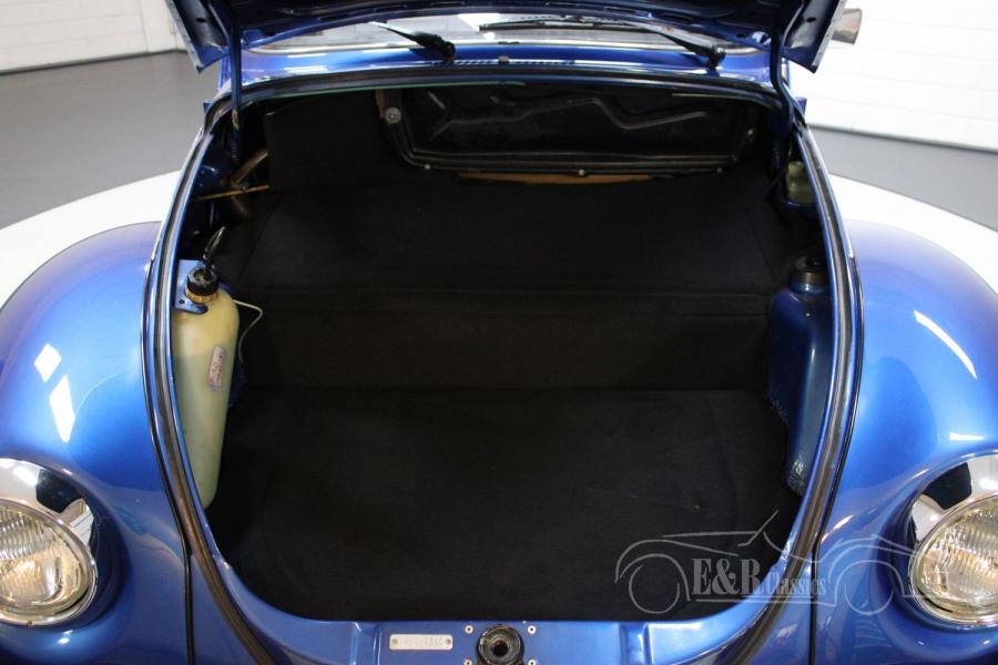 This Volkswagen Beetle is in a very nice condition and has a blue metallic paint. The interior looks nice and is equipped with a nice wooden steering wheel. The car is equipped with a black Sonnenland soft-top that can be folded in an instant when the weather is nice. Various chrome accessories have been fitted around the classic VW that make it complete.
