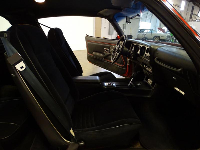 Este Trans Am tiene un aspecto intimidante. Escondido debajo del capó rojo adornado el conocido logo, lleva el motor de 400 pulgadas cúbicas que incluso a medio gas denota energía. Transmisión automática de 3 velocidades. Aire acondicionado, reproductor de casetes AM / FM, dirección asistida, frenos y ventanas tintadas, volante inclinable, Interior de terciopelo negro y llantas de copo de nieve con neumáticos radiales. Precio final. Homologado y matriculado a su nombre como Vehículo Histórico con entrega en Madrid. Vehículo procedente de Concesionario Oficial en USA. Fotos reales del vehículo en origen.