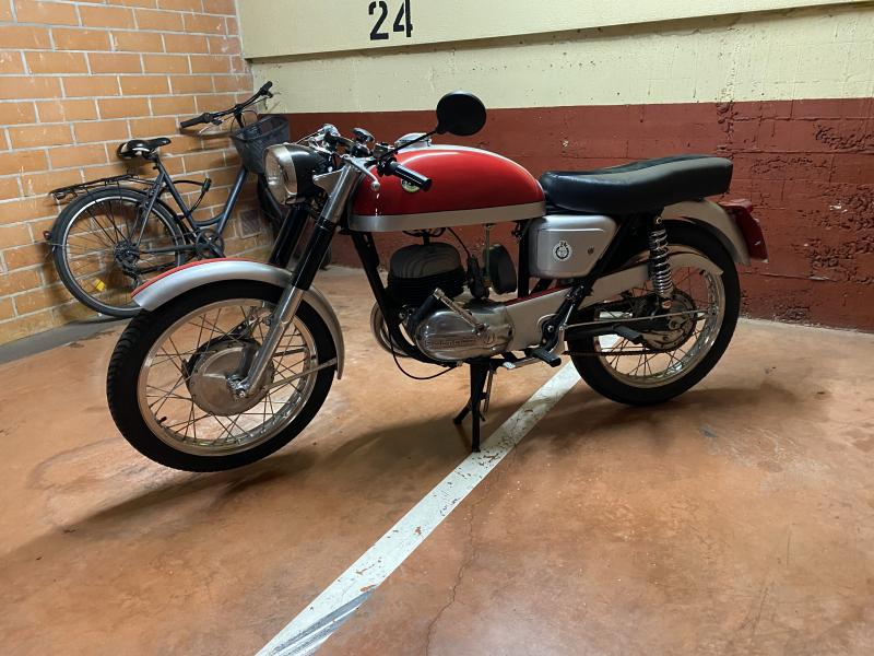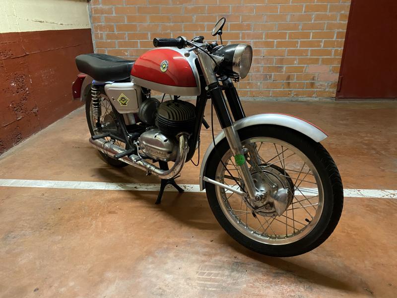 Perfecto estado. 1963. Completamente restaurada manteniendo piezas originales. Cilindro de 175cc. Funcionando a la perfección. Papeles e ITV en vigor. Encendido electrónico. Arranca con 2 patadas. Funcionando muy a menudo.