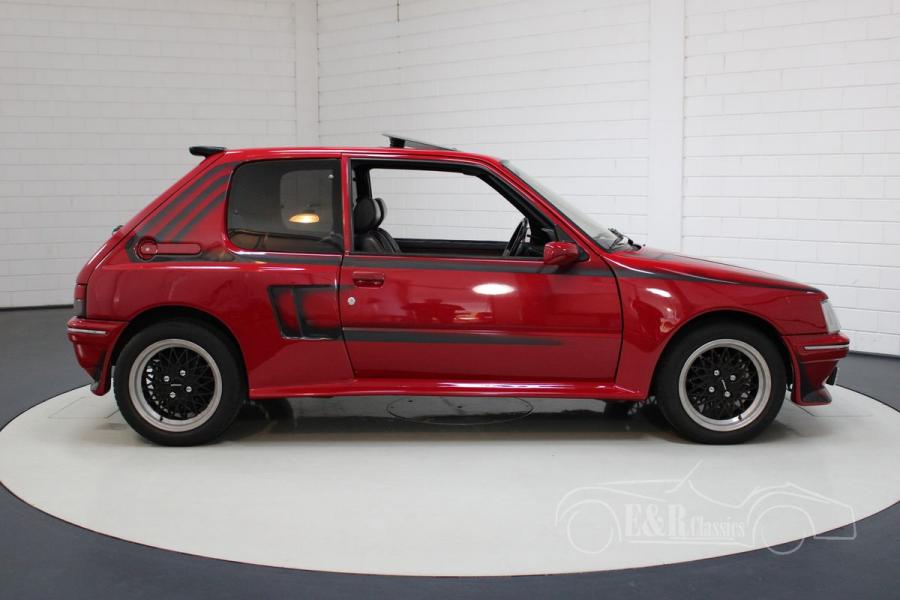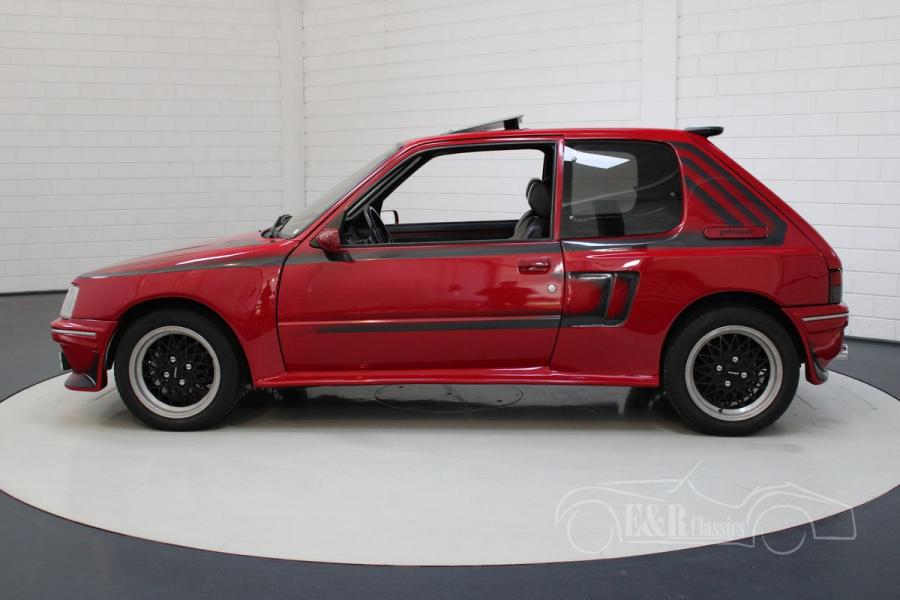 We offer here for sale a very rare Peugeot 205 GTi Gutmann. This special version of the Peugeot 205 GTi is equipped with a 1.9 liter block with Gutmann camshaft. This engine produces no less than 140 HP. Equipped with a Gutmann rear silencer, the car not only has a lot of power, it also makes a fantastic sound.