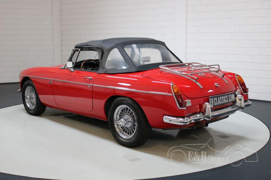 This MGB has been fully checked by our workshop and equipped with a new oil cooler. The nice extra of this MGB Cabriolet is that this classic is equipped with power brakes. The car has a beautiful red paint and black leather interior. The beautiful chrome wire wheels, the wooden steering wheel and the luggage rack make this MGB Cabriolet a real British Classic Car. A really nice classic car for many summer tours.