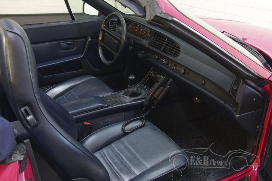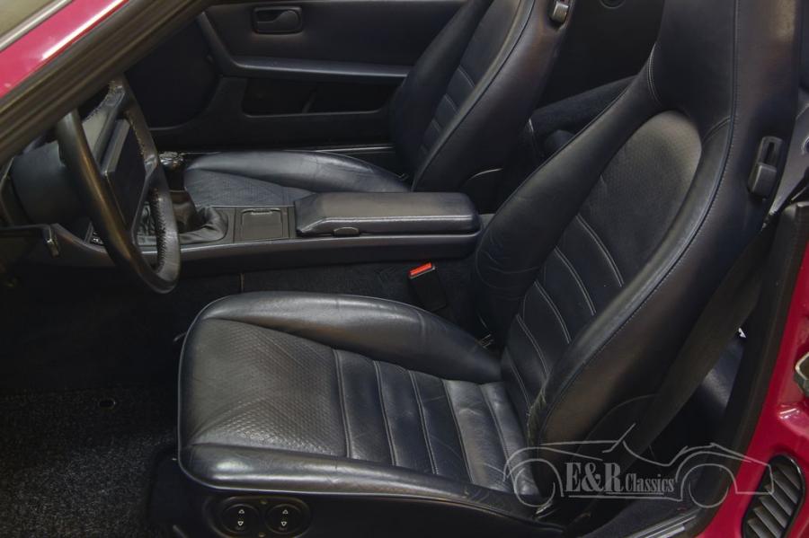 The Porsche 944 that we offer here for sale has the rare original factory colour Rubystone Red. This Cabriolet comes from a true 944 enthusiast who has owned the classic for no less than 15 years. The original maintenance booklets are present and completed. There are also invoices for the maintenance performed. The Porsche is well maintained both technically and optically and the timing belt was replaced in 2020. In addition to its beautiful Rubystone Red paint, the car has dark blue leather upholstery and all the luxury options you are used to from Porsche. Truly a beautiful and unique appearance that is ready to hit the road.