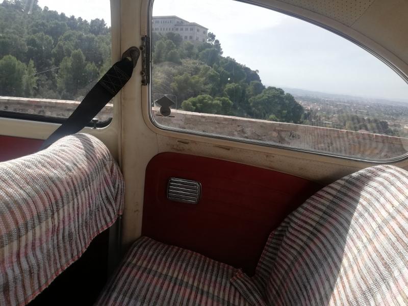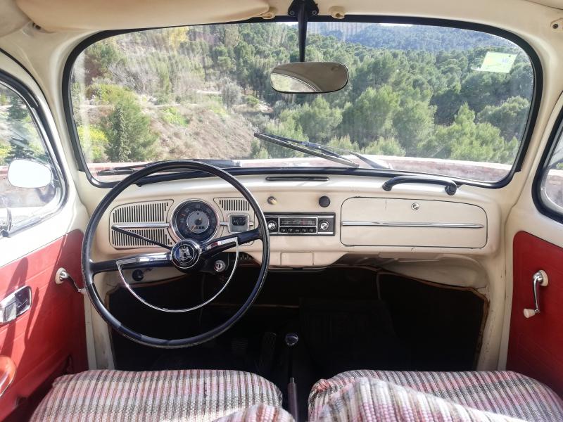 Por su edad tiene algunos desperfectos estéticos fácilmente solucionables. El vinilo interior del techo está para arreglar. La tapicería no es la original de skai roja, sino que es de tela (el relleno de los asientos sí es el original con muelles y estopa).