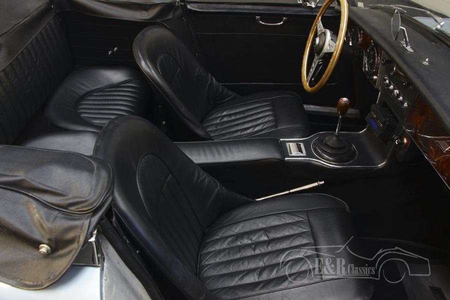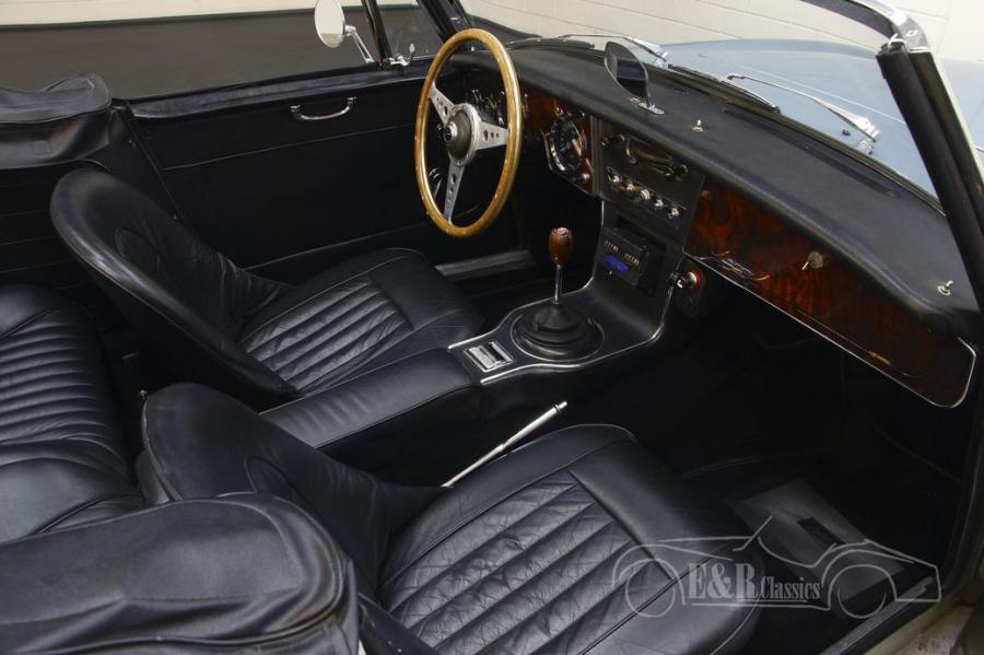 The classic has a beautiful two-tone paint in Ice Blue and white. The paint on this car is in an incredibly beautiful condition, as is the chrome all around. To top it all off, the Austin Healey 3000 MK3 is equipped with black leather upholstery, a walnut dashboard and a Moto-Lita steering wheel. Can you already see yourself touring this beautiful Healey this summer?