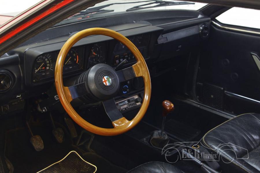 This Alfa Romeo GTV6 is not only great to see, the classic is also in good technical condition. The clutch and gearbox were overhauled very recently by an Alfa Romeo specialist. As befits an Alfa Romeo, this GTV6 has a beautiful red paint and the interior has black leather upholstery. The car is also equipped with a wooden steering wheel and gear lever, which makes it complete.