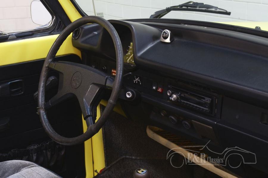 What distinguishes this Volkswagen Beetle from other Beetles is the beautiful yellow paint. A fantastic colour that completely matches a Beetle from the 1970s. The combination of the paint, all chrome details and the alloy wheels really make it great. The interior is in a beautiful, original condition and has fabric upholstery that stays nice and cool during sunny tours. This is an injection version, which makes for a wonderful driving experience.