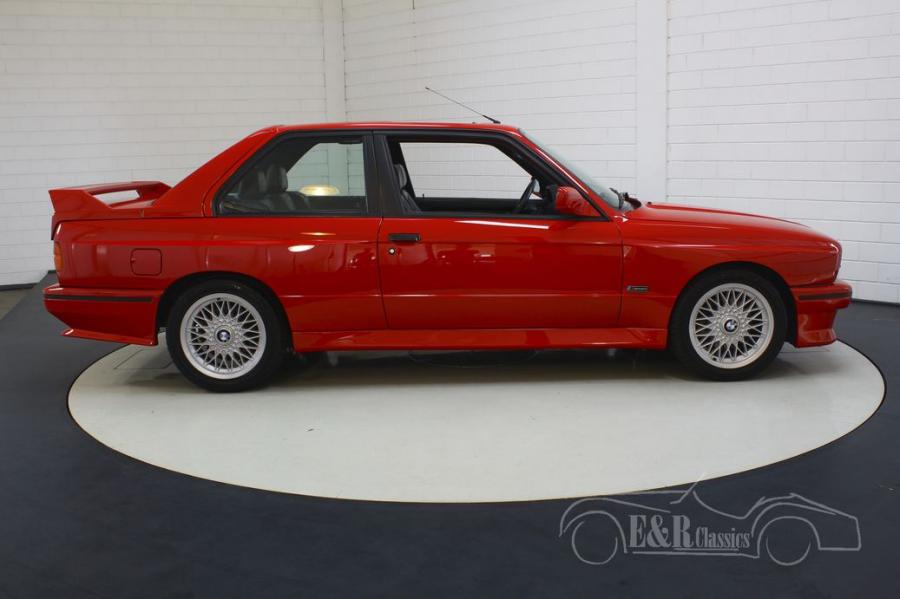 The combination between the alloy wheels and the red paint looks great on the classic and fits perfectly with its sporty performance. The interior has black leather upholstery and is in very good, original condition. In short, a very nice, original BMW M3 from the first owner who is completely ready to hit the road.
