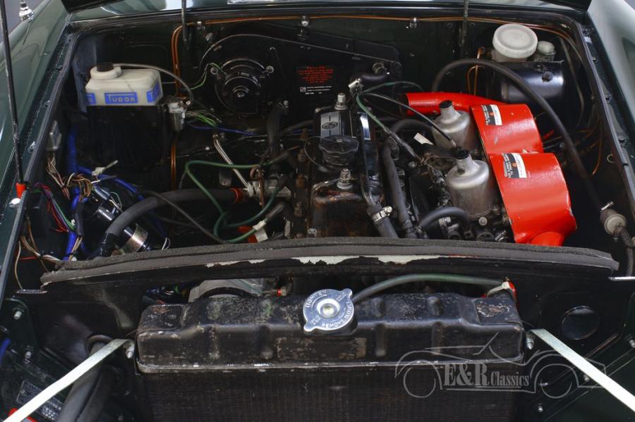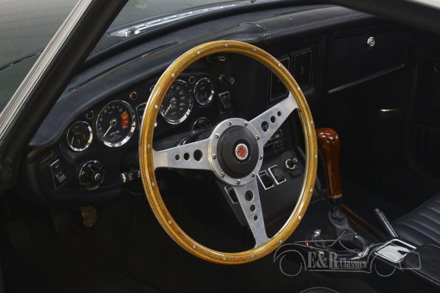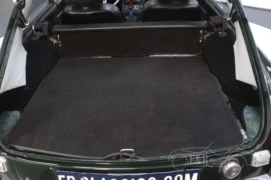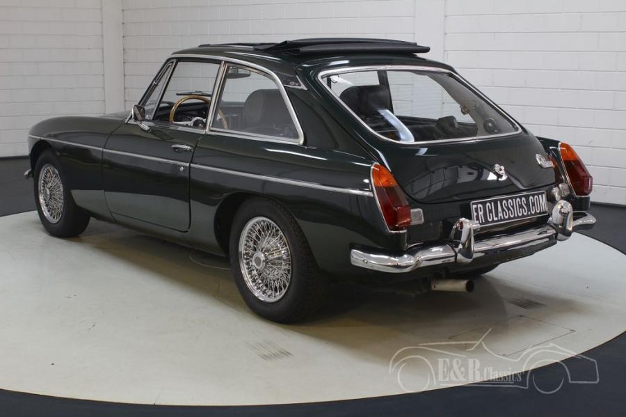 This MGB has a dark British Racing Green paint, which fits perfectly with a classic from this period. The chrome wire wheels and accessories are in very good condition and combine beautifully with the paint. The MGB GT is equipped with a sliding roof, so that you can enjoy the outdoors in no time when the weather is nice. The interior looks beautiful and has black leather seats, a wooden steering wheel and gear lever and chrome counters. In short, a very fully equipped MG MGB GT that is completely ready for its new owner.