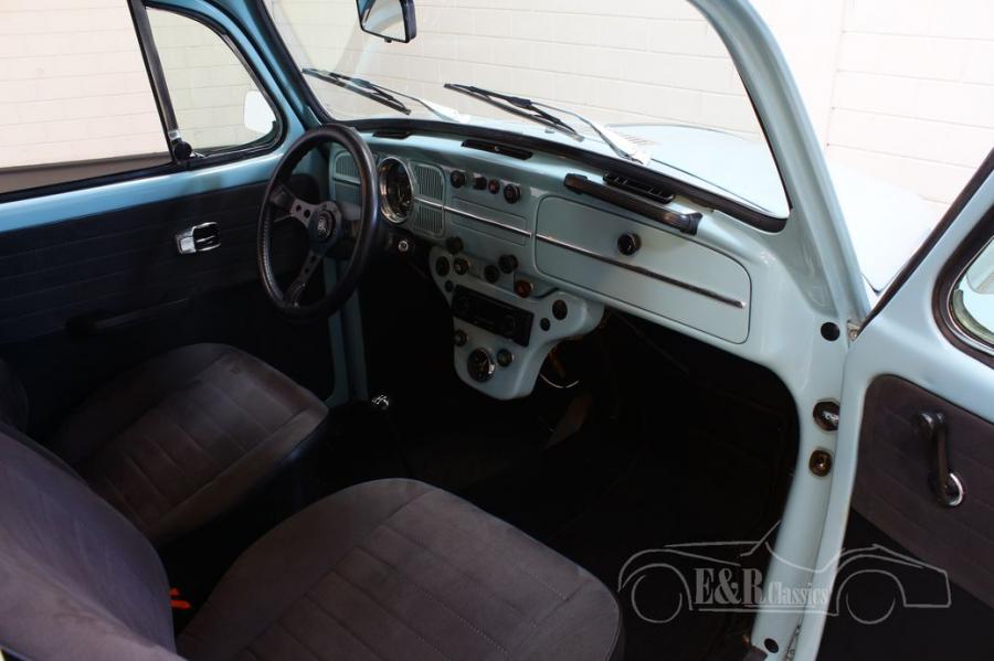 This Volkswagen Beetle is really a sight to see! The light blue paint is an original Volkswagen factory colour and looks great on this classic car. The chrome is in very good condition and combines very nicely with the light blue paint. The interior has luxurious upholstery and a beautiful original dashboard with the characteristic large counter in the middle. In short, a very fully equipped Volkswagen Beetle in a beautiful colour scheme that is completely ready for many beautiful tours.