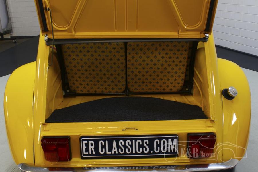 This Citroën 2CV was delivered new in the Netherlands and has been restored and personalized in the past with a unique Rally Look. The engine of this 2CV has been replaced by a 652cc engine from a Citroën Visa that provides more power than a standard 2CV engine. The classic is also equipped with a K and M air filter, oil cooler and disc brakes at the front, which ensures a fantastic driving experience.