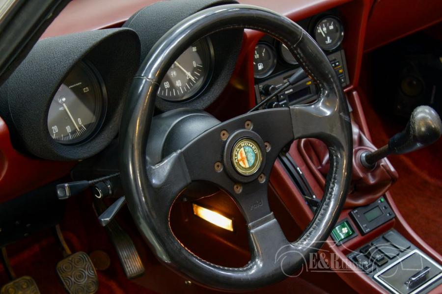 The interior has burgundy red leather upholstery, which ensures a nice interplay with the black paint. In short, a beautiful, well-maintained Alfa Romeo that is ready for many beautiful tours.