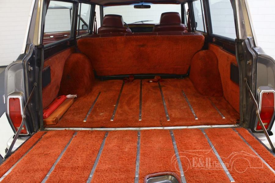 The Wagoneer remains an impressive sight to see. The huge grille, large wheels, chrome accessories and of course the well-known wood accents all around. The overall picture of this Jeep is completely correct. The interior offers plenty of space and is equipped with red leather upholstery combined with fabric. In short, a very fully equipped Jeep Wagoneer that is completely ready for its new owner.