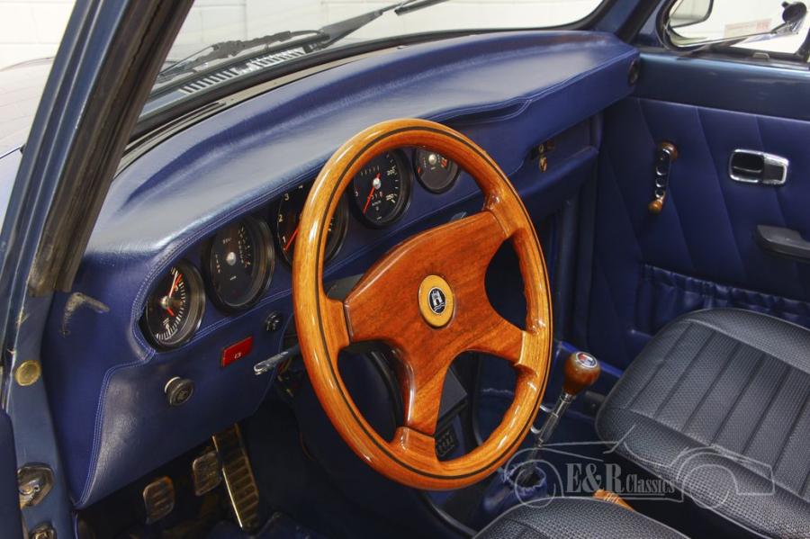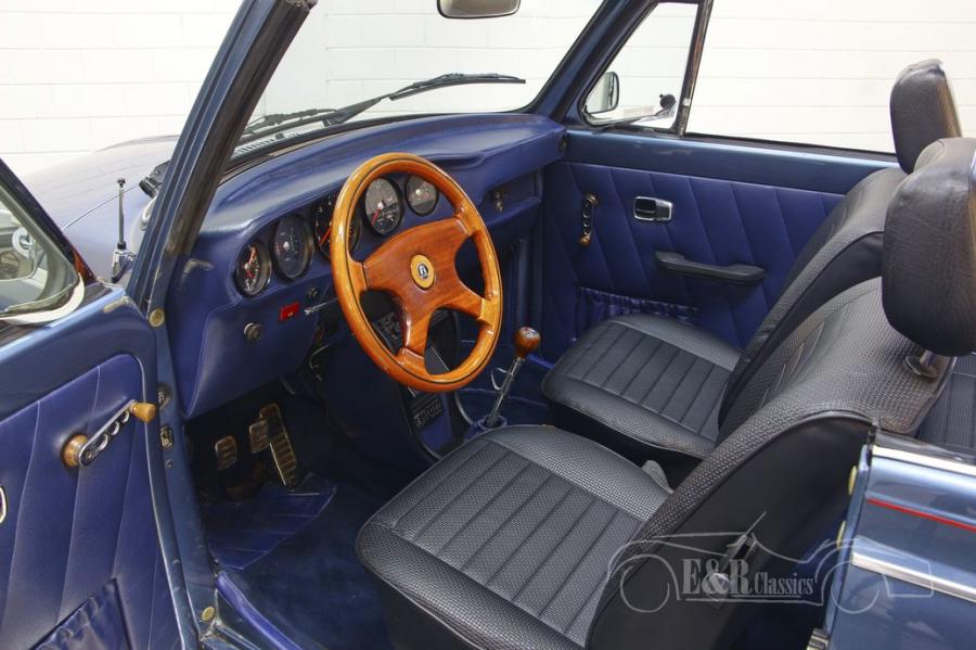 In addition to the Porsche specifications, the Beetle Cabriolet is equipped with various options such as Sprintstar rims, front disc brakes and a sports exhaust system. The interior is equipped with new upholstery, a wooden steering wheel and gear lever and Porsche counters. The classic car has a beautiful blue metallic paint and a very nice Sonnenland soft top.
