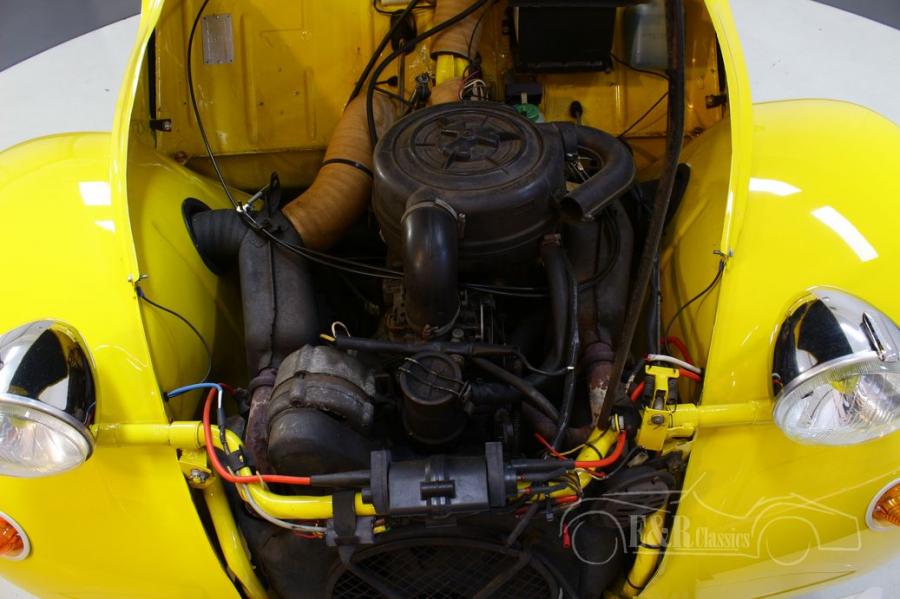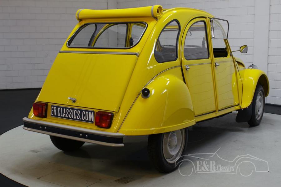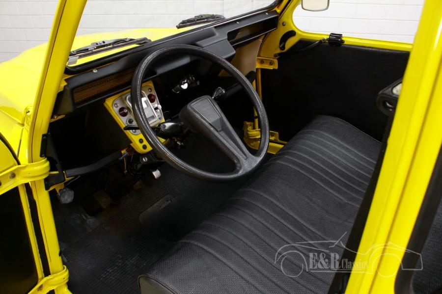 The yellow paint fits perfectly with this classic and makes it a real eye-catcher. The 2CV is also equipped with black upholstery and a yellow folding roof that matches the colour of the car. Another nice extra is that this Citroën is equipped with front and rear parking sensors. A nice extra that is also very useful!
