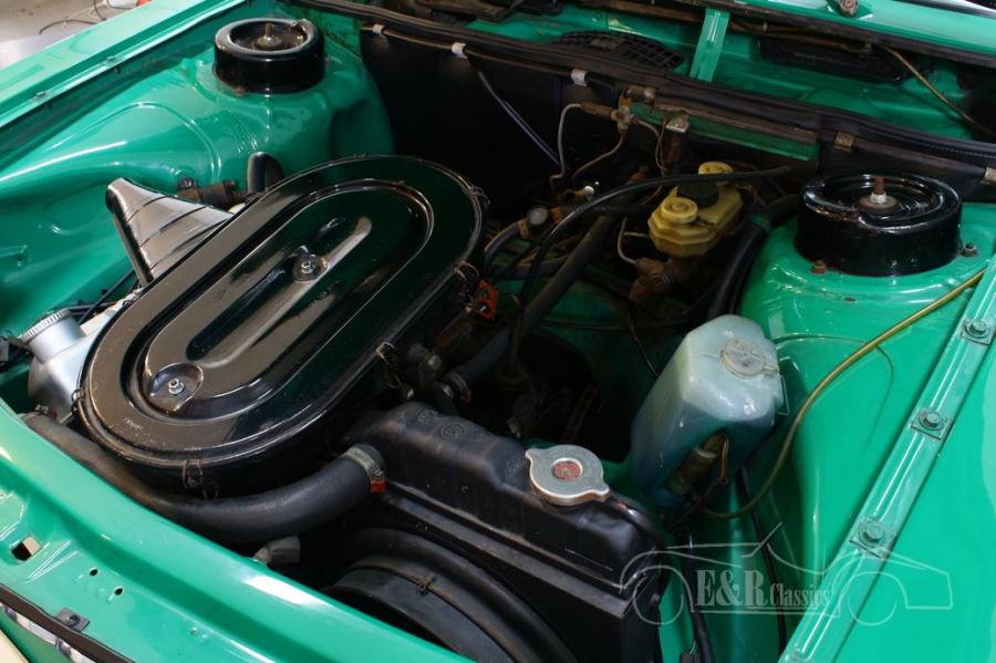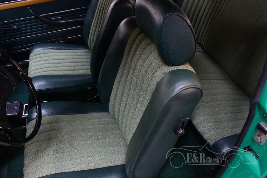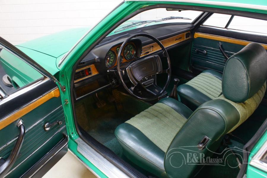 The first thing you notice when you see this Audi 100 Coupé S is the beautiful paint. The Audi is in fact executed in the original factory colour Malachite Green. A colour that completely matches an Audi from the 1970s and combines beautifully with all the chrome details. The interior has also been renewed and has the same colour scheme as the car, which makes for a beautiful whole. The dashboard is in original condition and has beautiful wood accents all around.