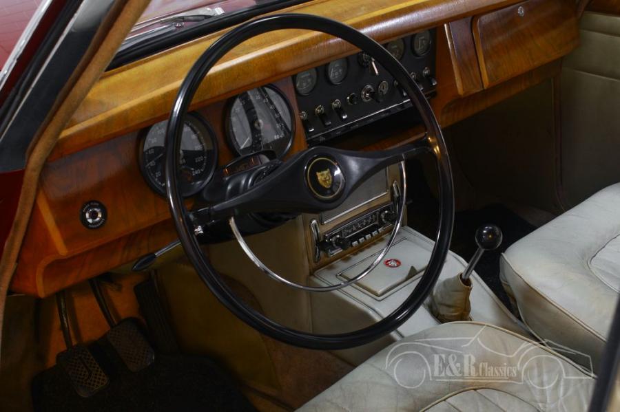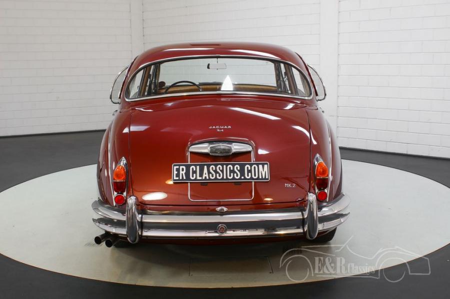 The Jaguar MK2 that we offer for sale here is really a sight to see. The combination between the dark red paint and the beige-coloured interior is really beautiful. The chrome is in very good condition and combines beautifully with the paint of this classic. The wooden dashboard is in a neat, original condition and completely matches a classic from the 1967s.