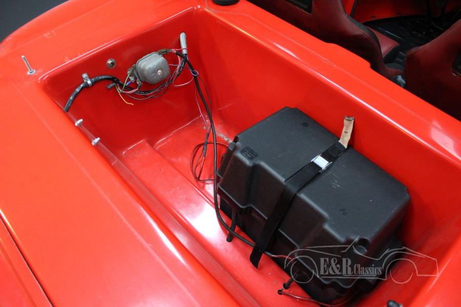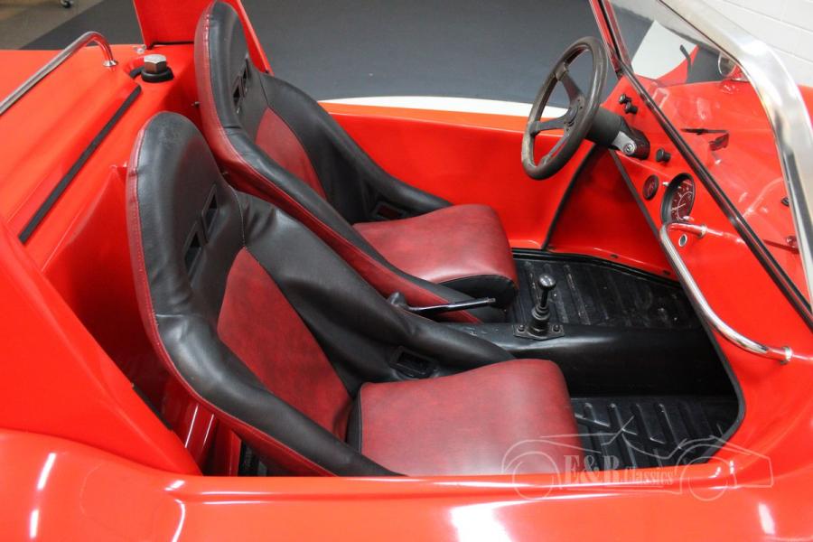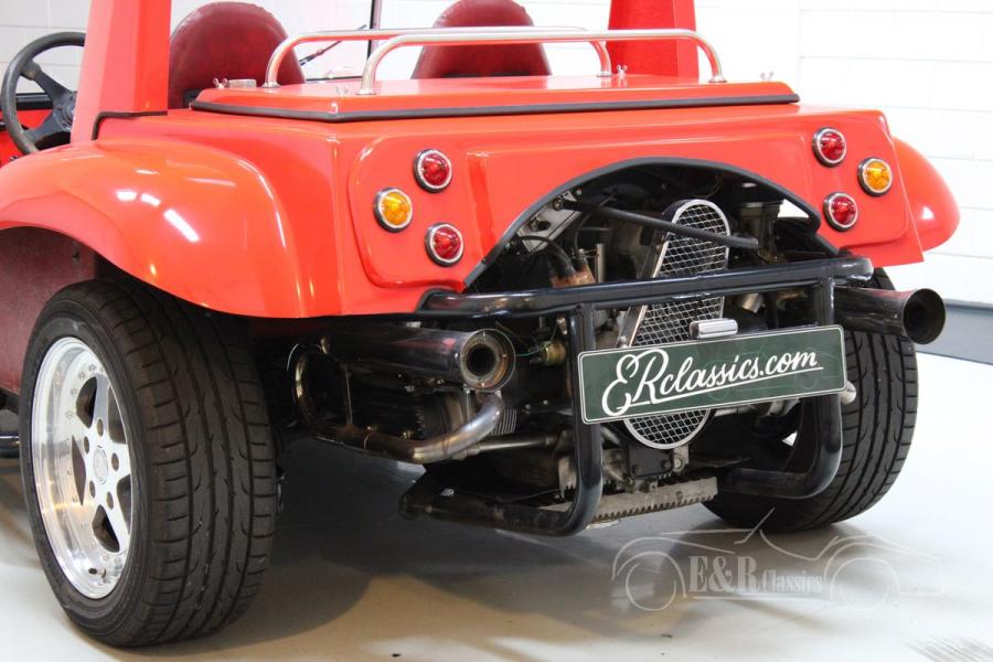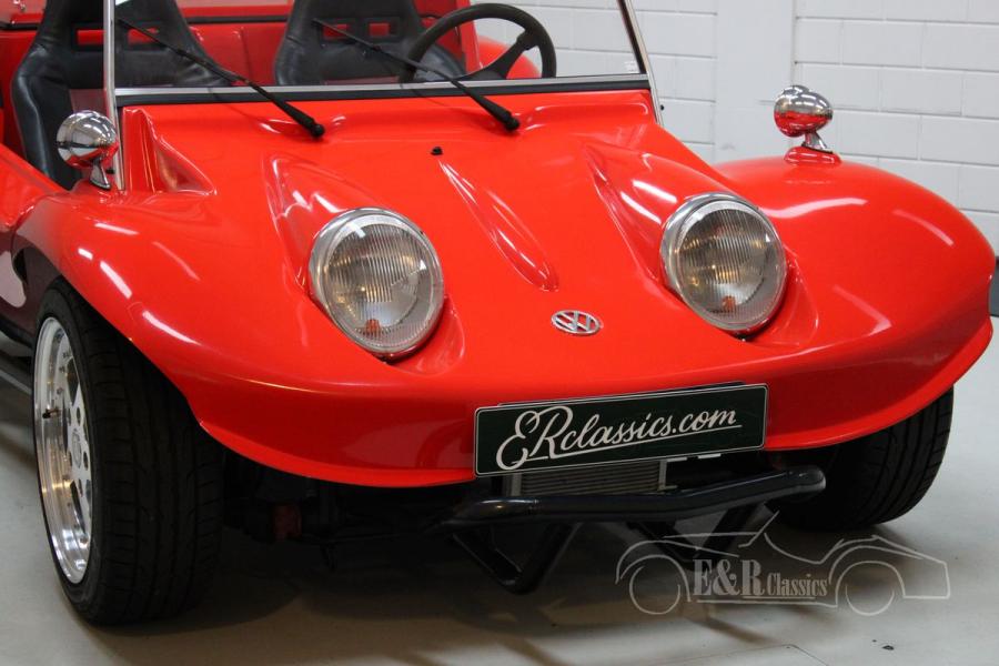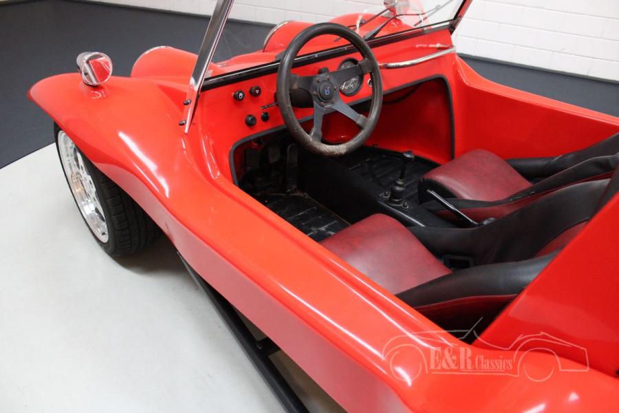 This 1973 Volkswagen Buggy has the 1,600cc 4-cylinder boxer engine with manual gearbox. The red body is in very good condition. The interior is fitted with leather seats in the colour combination red and black. This buggy drives excellently and stands on alloy rims from HRE Performance Wheels. Are you looking for a beautiful buggy for a tour on a wonderful day? For more information or a personal shop video, please contact one of our sales people.