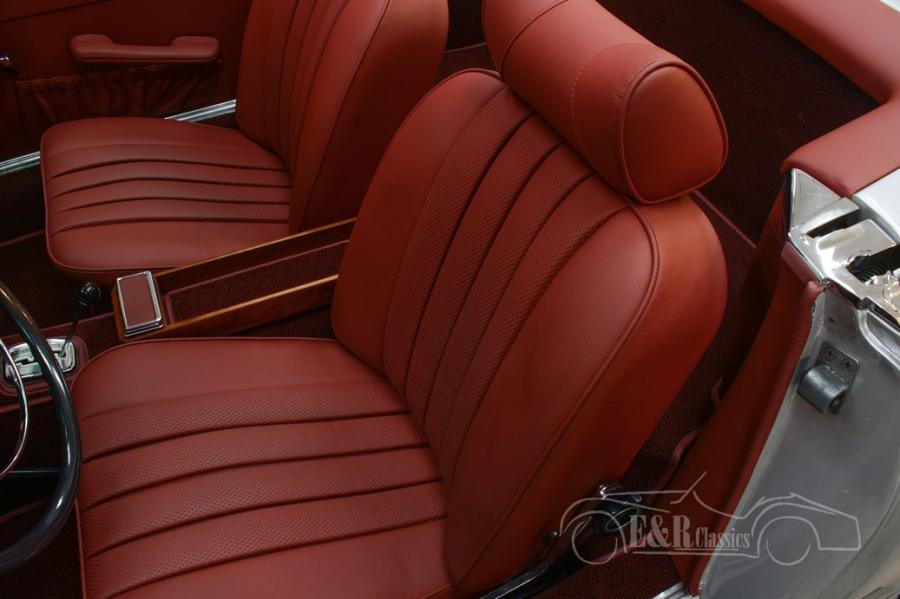 The Pagode has a beautiful gray paint that combines very nicely with the Baroque wheels and all the chrome details. The interior of the Mercedes-Benz 280 SL is quite a sight to see. The renewed interior is finished in burgundy red that combines fantastically with the gray paint.