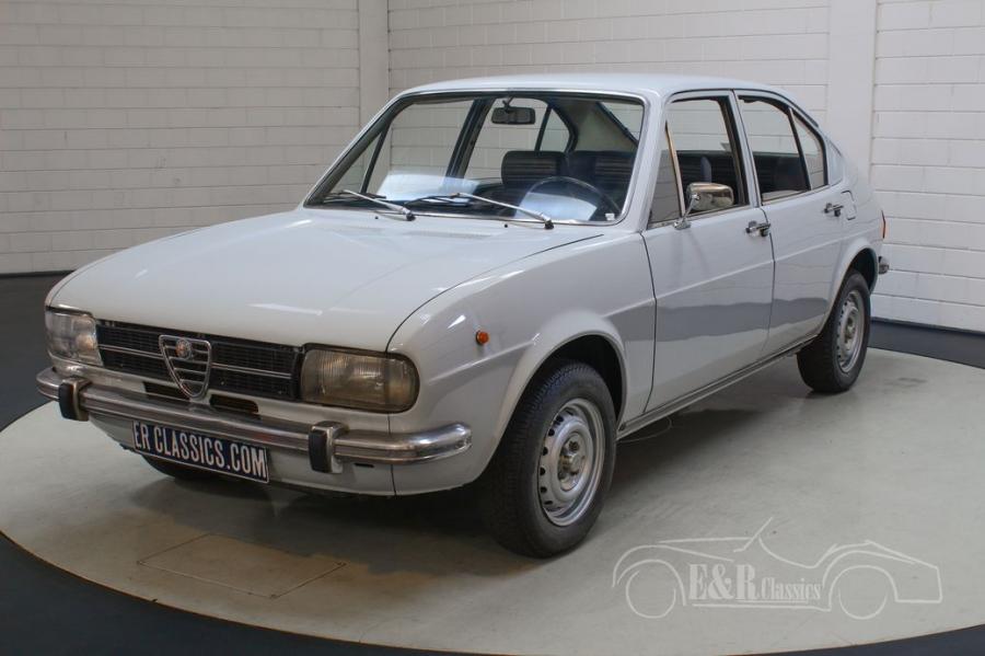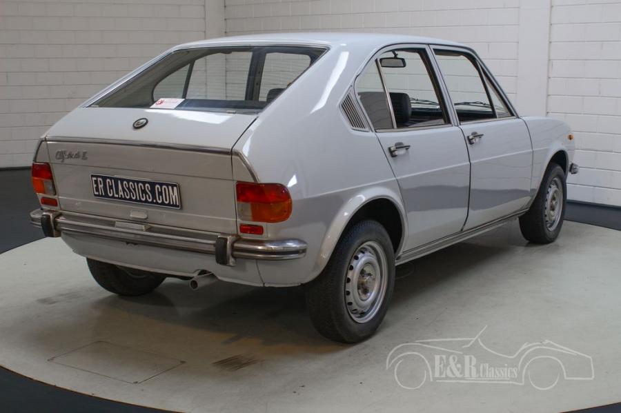 The Alfa Romeo Alfasud L is really a sight to see. The body has been repainted and provided with a beautiful light grey paint that completely matches this classic. The dark blue interior is in good condition and has some minor signs of wear here and there. The combination of the light grey paint with the dark blue interior looks beautiful and gives the classic car a distinctive character.