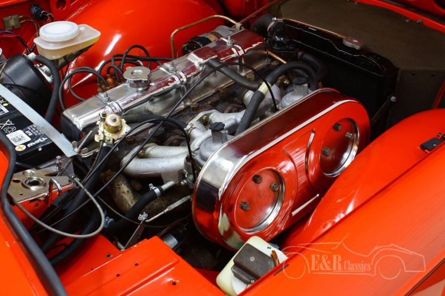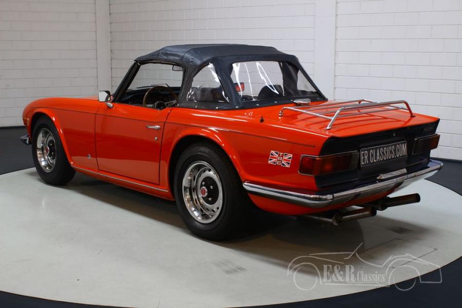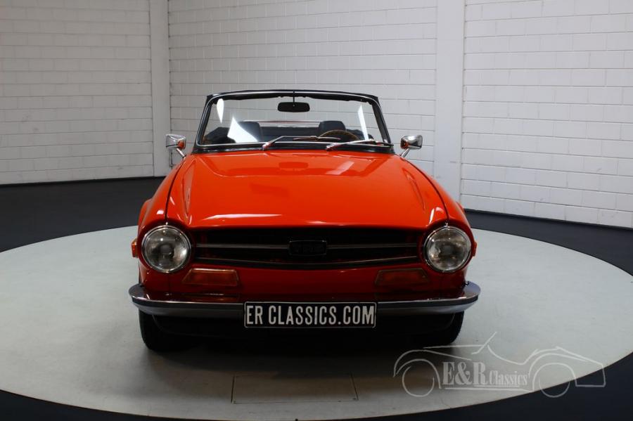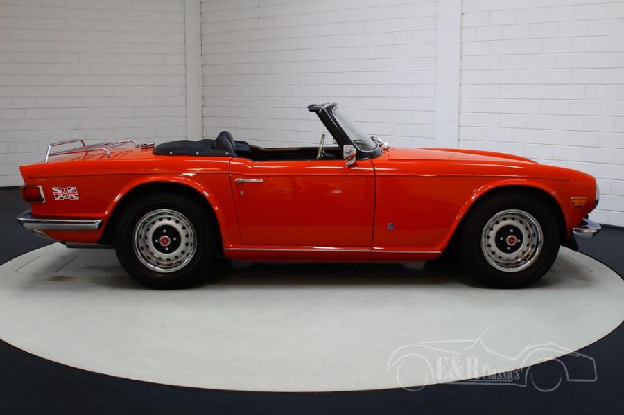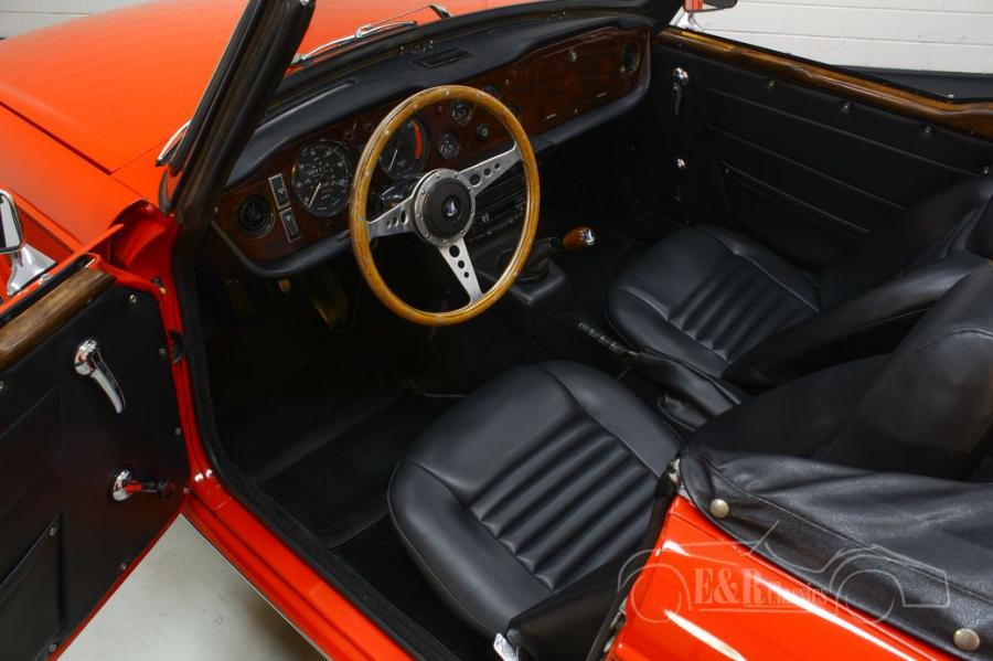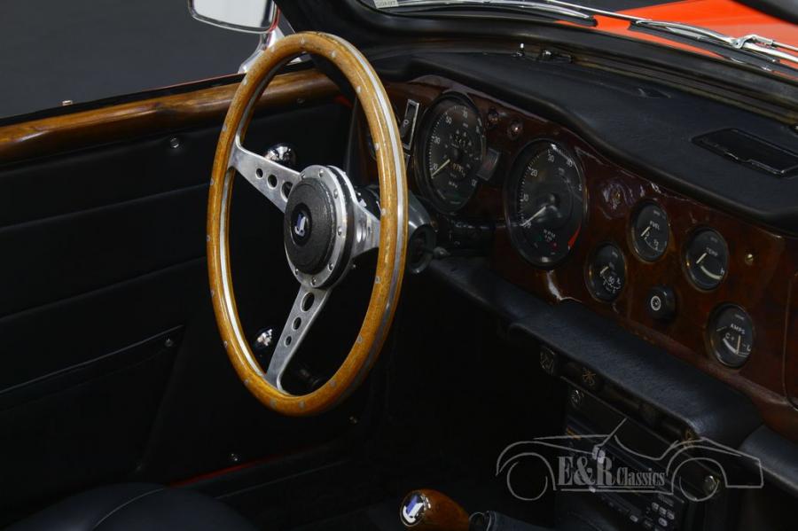 The Triumph TR6 that we offer for sale is really a sight to behold. It has a beautiful red paint that combines very nicely with all chrome accessories and the original TR6 rims. The interior is also in very good condition. The TR6 is equipped with luxurious, comfortable seats and nice extras such as a wooden steering wheel, dashboard and gear lever.