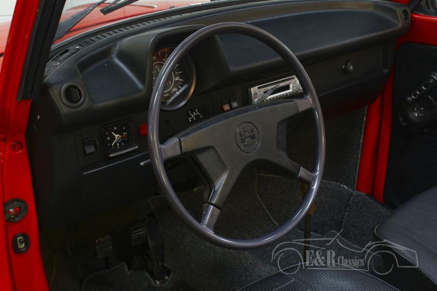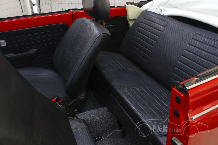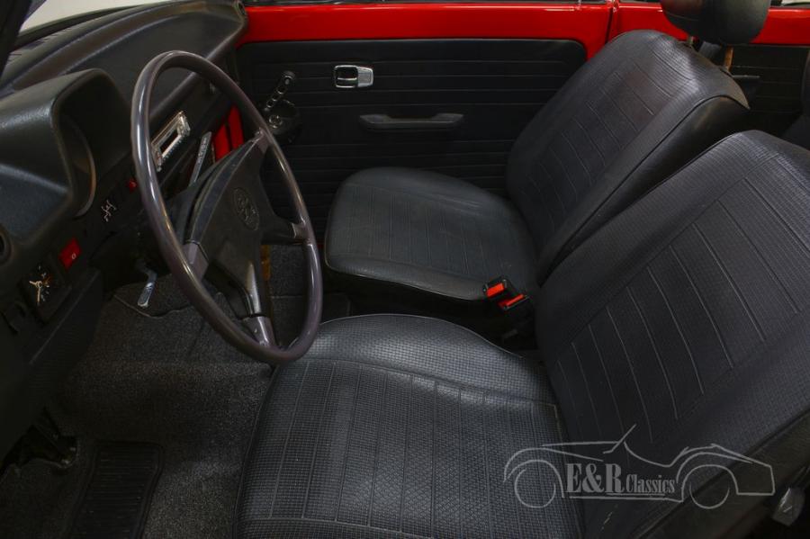 A red Beetle Cabriolet with black soft top, there is hardly a better combination. The paint of this Beetle pops out and combines beautifully with the chrome bumpers and accessories. The interior of this Beetle has been renewed by the previous owner, as well as the fabric soft top. This Volkswagen Beetle Cabriolet is truly a sight to see and ready to hit the road.