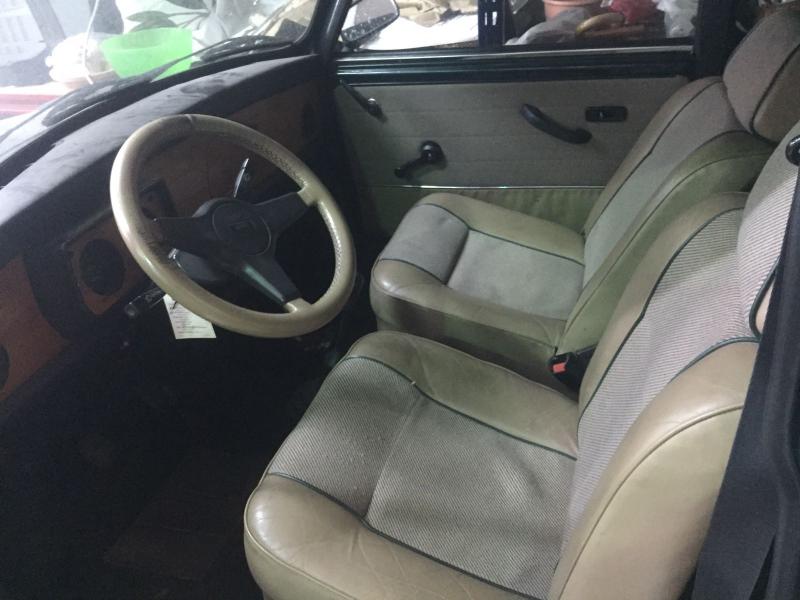 El estado general del coche es bueno, funcionan todos los botones, manivelas, ventanillas traseras. No conserva la radio. Incluye paragolpes delantero (no aparece en las fotos) y el trasero color cromo, en estos si que hay algo de oxido. En el portón del maletero bajo la matricula tiene un agujero por el oxido.