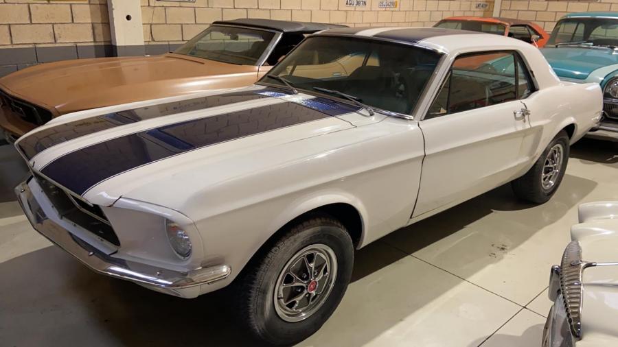 Se trata de un Ford Mustang con motor V8 y cambio automático.