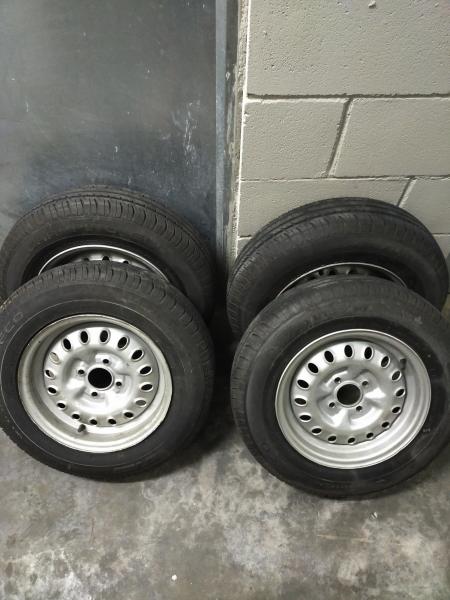 Ruedas completas procedentes de Triumph Spitfire 1500, con neumáticos 155/80-13 muy poco usados, llantas 5Jx13x22, perfecto estado...