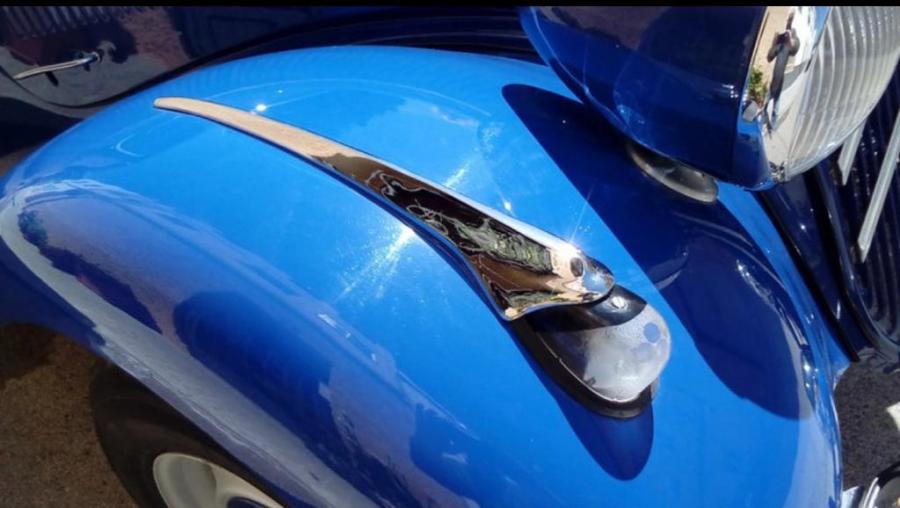 Restaurados embellecedores, intermitentes, pasos de rueda, protectores de aluminio pulido.