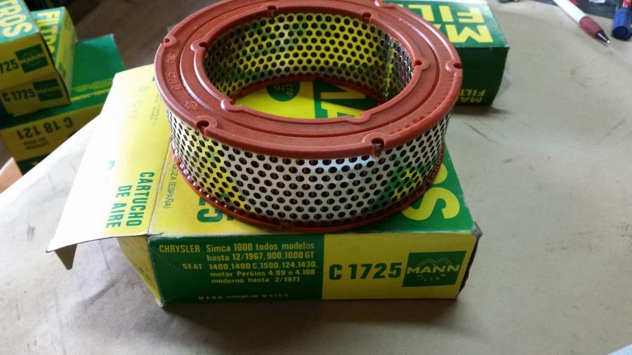 Se vende filtro de aire para Simca 1000 T.M hasta 12/67, 900 y 1000 GT, Seat 1400, 1400 C, 1500, 124, 1430 con Motor Perkins 4.99 y 4.108. Son nuevos a estrenar en perfecto estado. marca Mann
