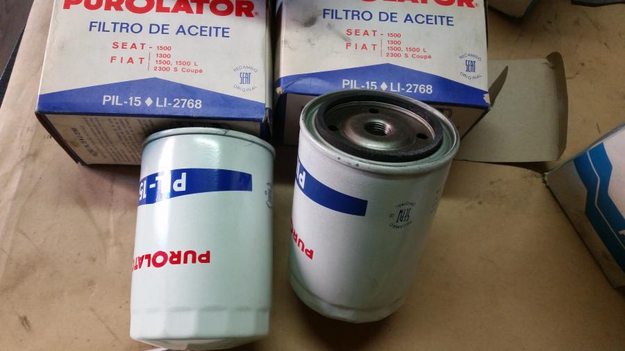 Se venden filtros de aceite originales de Seat PIL 15, para Seat 1500, Fiat 1300 1500 y 2300. Son nuevos a estrenar en perfecto estado.