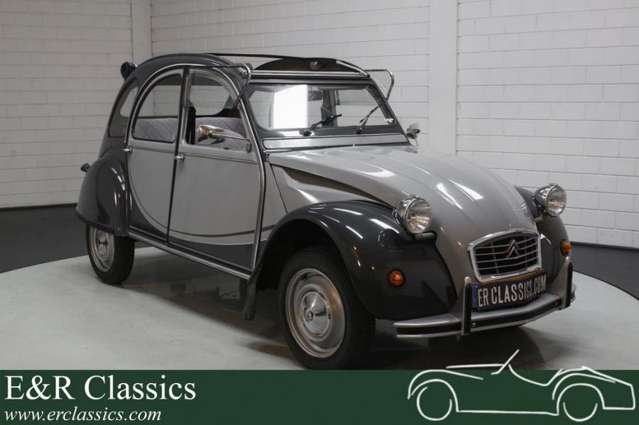 The 2CV Charleston is the most luxurious model in the 2CV series and is characterized by, among other things, the round headlights, two-tone paint, chrome details and luxurious upholstery with a diamond pattern. The 2CV Charleston that we offer for sale here has a dark and light grey paint with a light grey interior. A very tasteful combination that fits perfectly with this French classic. Can you already see yourself touring in this Citroën?