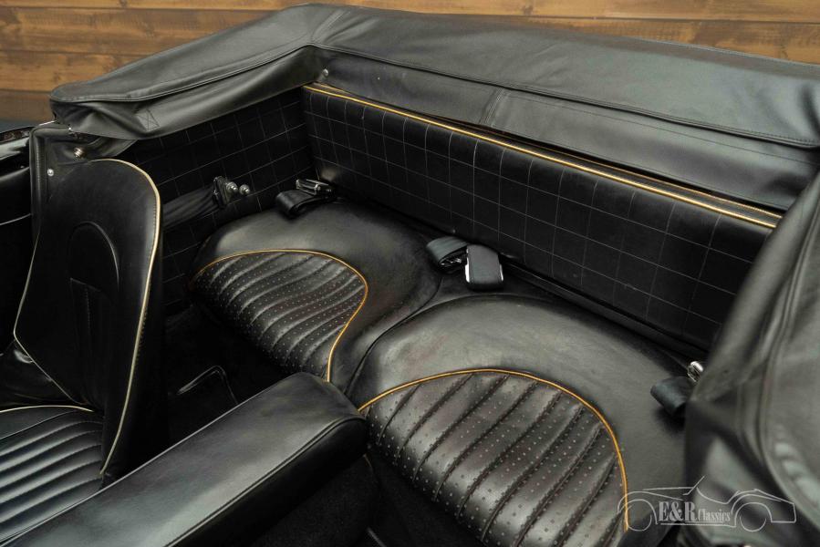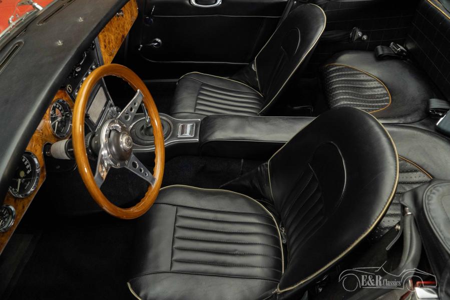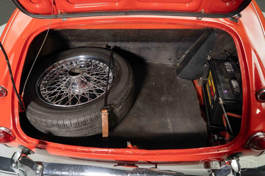 El Healey que ofrecemos a la venta aquí es un espectáculo digno de contemplar. Tiene un acabado en la hermosa combinación de colores de dos tonos, rojo Colorado y negro. Una combinación de colores que queda muy bien en el Austin Healey y combina muy bien con el cromo y la capota de lona negra. El interior del clásico está en buen estado y está equipado con tapizado negro con ribetes blancos, tablero de madera y volante Moto-Lita.