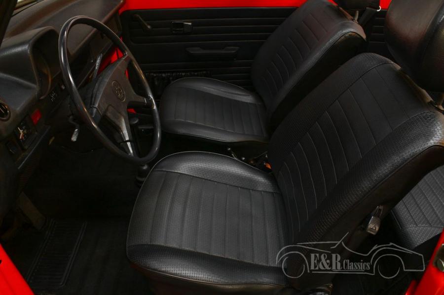 Como si un Volkswagen Beetle no se viera muy bien por sí solo, este Beetle también tiene una hermosa pintura roja. Este color encaja a la perfección con el clásico alemán y combina muy bien con todos los accesorios cromados. El Beetle también tiene un interior negro y una capota blanda negra que contrasta muy bien con la pintura roja. En resumen, un Beetle Cabriolet muy bien equipado que está completamente listo para su nuevo propietario.